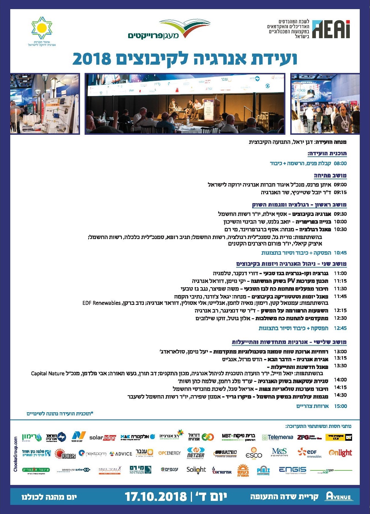 אנא עדכנו ביומנים – 17/10/18 – ועידת האנרגיה השנתית לקיבוצים